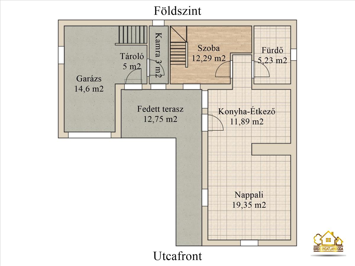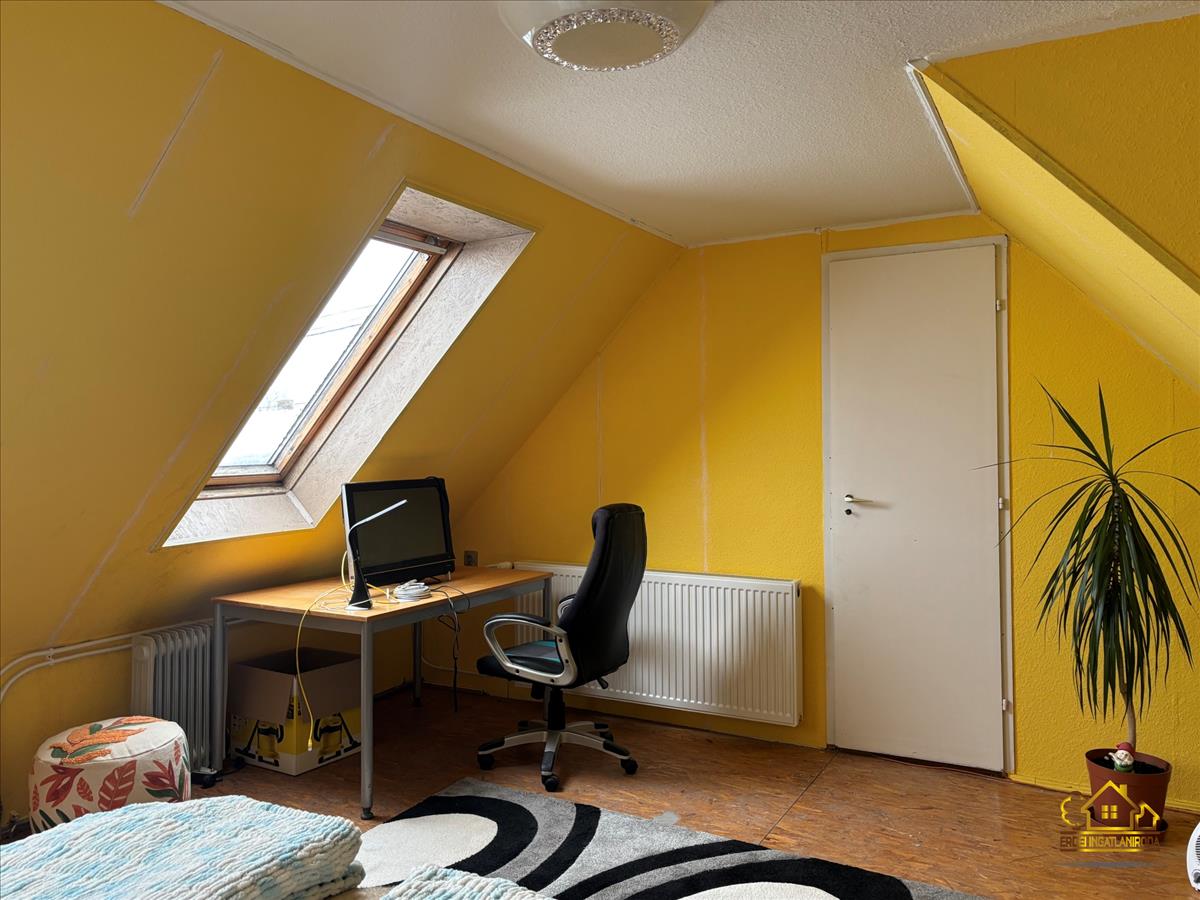 Az ingatlanban a földszinten található egy tágas konyha-étkező-nappali, egy zuhanyzós fürdőszobával és egy szobával, melyből a tetőtérbe jutunk. a tetőtérben 2 hálószoba található, az egyikhez egy 10 m²-es erkély tartozik, ez a szoba klímával felszerelt. a másik tetőtéri szobából egy ajtó vezet ki a padlástérre.