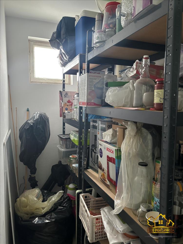 A házhoz külön bejárattal kapcsolódik egy 5 m²-es tároló, egy kamrával és a garázzsal. Innen nyílik a lejárat a 8 m²-es száraz pincébe. a lakás és a melléképület egy 13 m²-es fedett terasszal összekötött.