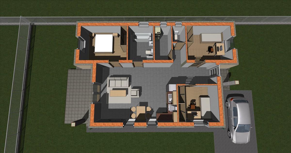 - Hőszigetelés: Homlokzaton 15 cm Grafit extrudált polisztirolhab. Padlóban 12 cm