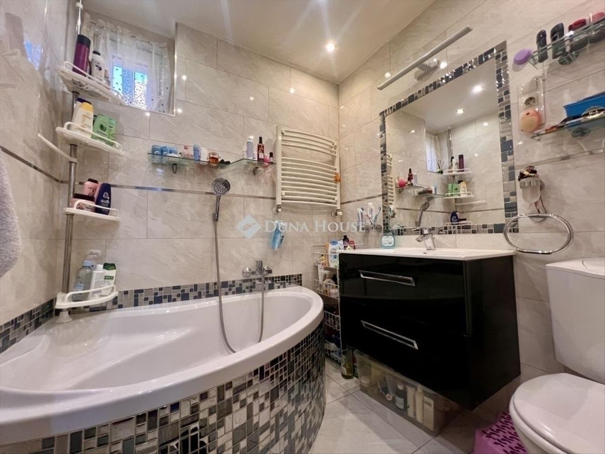 A földszinten 2 tágas szoba, és egy óriási konyha- étkező- nappali található. a két külön nyíló szoba minőségi új beltéri fa ajtót kapott. a felújított fürdőszobában sarokkád, wc, mosdó kapott helyet.