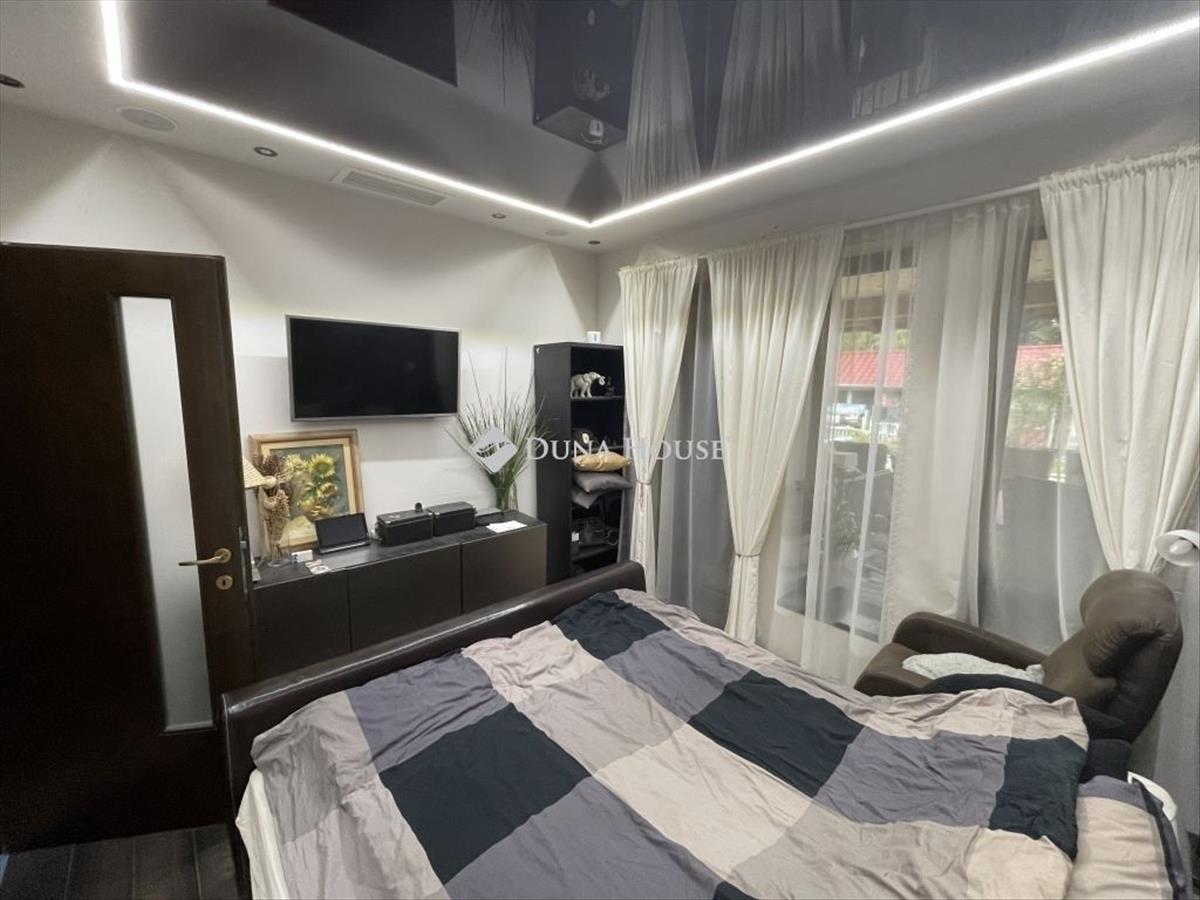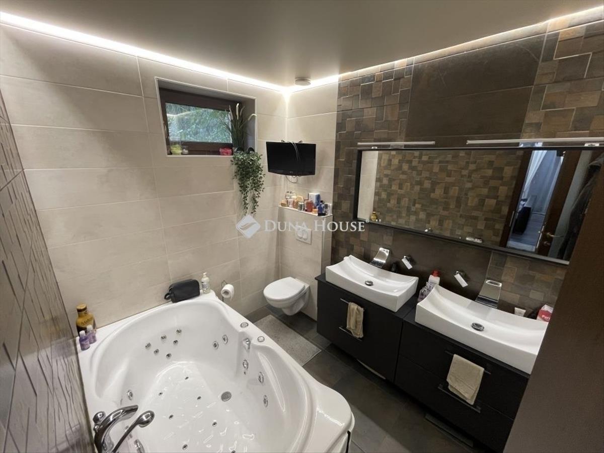 Eladó Kiskunlacházán egy 130 nm hasznos alapterületű, tetőtér-beépítéses, modern téglaház, amely okosotthon-rendszerrel, energiatakarékos megoldásokkal és rengeteg extrával várja új tulajdonosát! Főbb jellemzők: Energiatakarékos építés: 20 cm grafit szigetelés, tetőtérben korszerű fújt szigetelés Fűtés-hűtés: hőszivattyús rendszer, szobánként szabályozható fűtés, mennyezeti fancoil hűtés Okosotthon technológia: hangvezérelt világítás és hőmérséklet, co2 érzékelős szellőztető, sötétedés-érzékelős elektromos redőnyök Biztonság: 6 kamera, mozgásérzékelő, telefonos értesítés Kényelmes élettér: amerikai konyhás nappali, hálószobák, vendégszoba, több fürdő és wc, gardrób, gépház, kamra és egy pánikszoba Külső extrák: medence gépészettel, fúrt kút az öntözéshez és vízellátáshoz, 25 nm -es melléképület, elektromos kapu autóbejáróvalEmelet és terasz:A tetőtérben hálószoba, gardrób, fürdő+wc és egy tágas közlekedő található. a hatalmas teraszról vpc padlós napozórész és a medence látványa tárul elénk. a használatbavételi engedély intézés alatt áll, így az új tulajdonosnak ezzel már nem lesz gondja. FIX 3% lakáshitelre megvehető