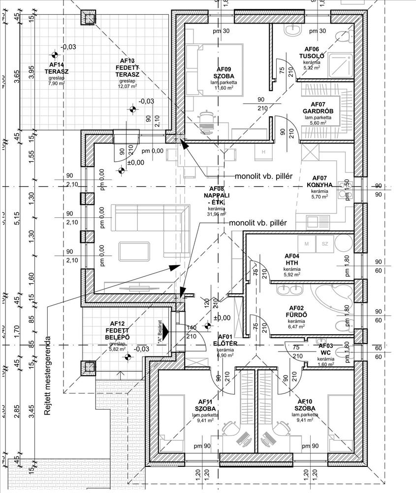 Fedett terasz: 25 m²