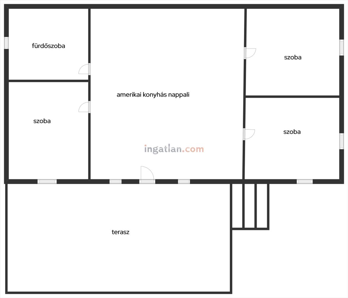 A házban 3 szoba és egy amerikai konyhának kialakítható nappali található.