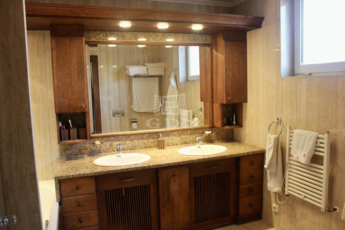 A ház belső tereit magas minőségű anyagok és megbízható műszaki megoldások jellemzik: a fürdőszobákban Laufen szaniterek, a közlekedőkben és vizes helyiségekben gránit burkolatok, míg a szobákban parketta és laminált padló található. a tölgyfából készült beltéri ajtók, a konyhabútor, a lépcső és a beépített gardróbszekrények egyedi kivitelezésűek. a földszinti nappaliban beépített kandalló és stílusos bárszekrény pedig tovább erősíti az otthon meleg, elegáns hangulatát.