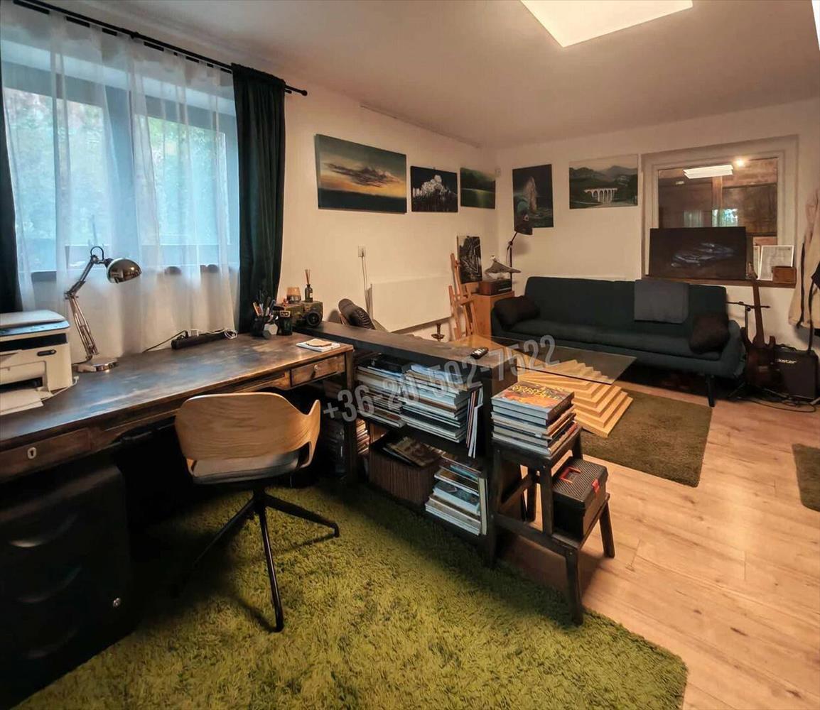 Alsó szint, melynek belmagassága 2, 34 cm: garázs, kazánhelyiség, dolgozó, mellékhelyiség, csodálatos műterem és momentán asztalosműhelyként funkcionáló szoba. Ez a szint kis ráfordítással külön lakrésznek alakítható át.