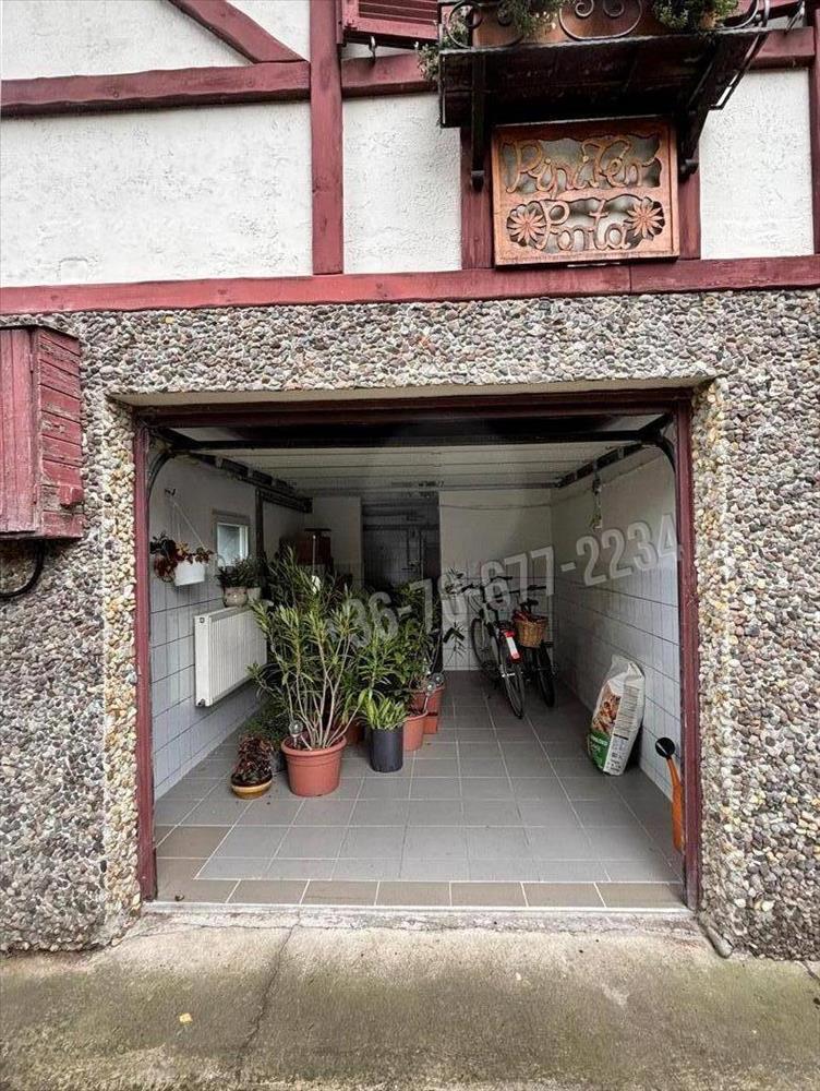 Az alsó szinten egy masszív, 50 m²-es vasbeton szerkezetű dupla garázs, valamint két külön bejáratú tároló található – ideális kerékpárok, szerszámok vagy szezonális felszerelések számára.