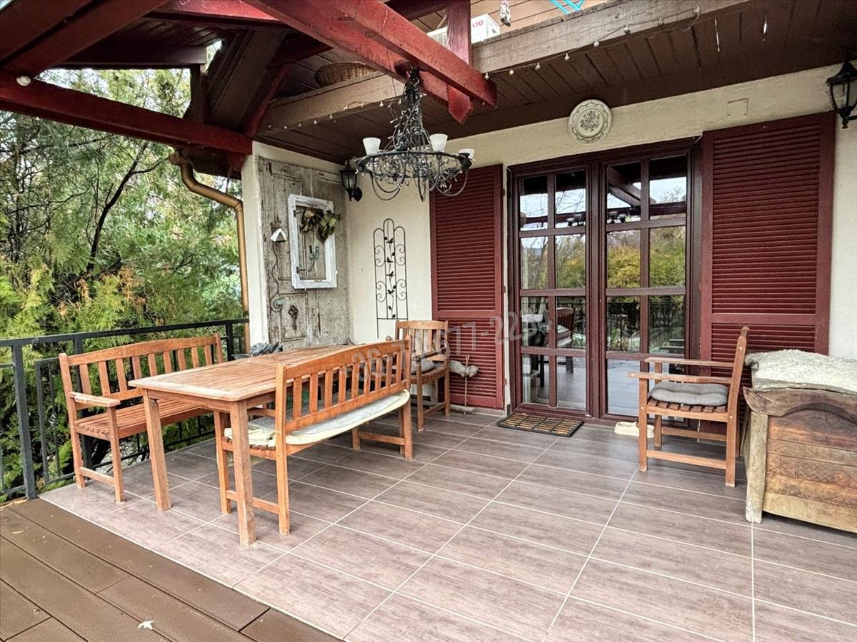 A nappaliból kilépve a hangulatos terasz várja, amely tökéletes helyszín egy reggeli kávéhoz vagy esti kikapcsolódáshoz.