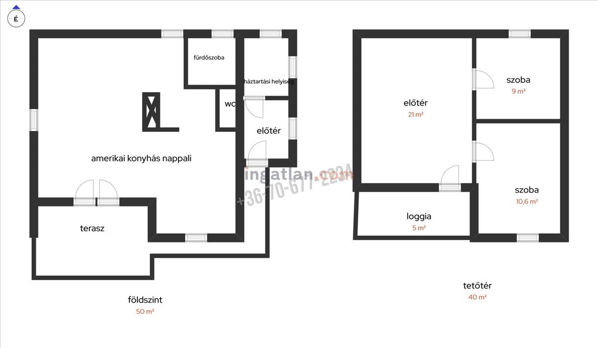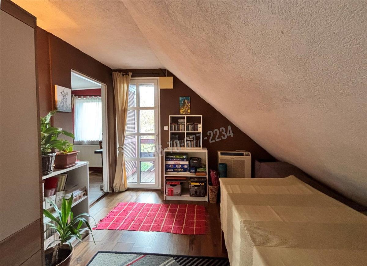 A tetőtérben az előtérből egy erkély, valamint két külön nyíló szoba található – ideális hálók, dolgozószobák vagy gyerekszobák kialakítására.