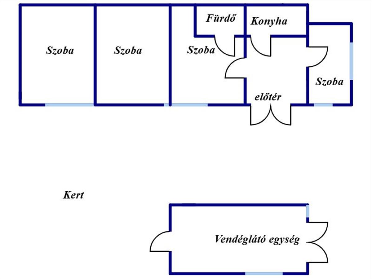 A parasztház a telek jobb oldalán helyezkedik el, mellette a kert terül el. a ház felújítandó állapotú, 200nm , alatta egy 45nm -es pincerésszel.
