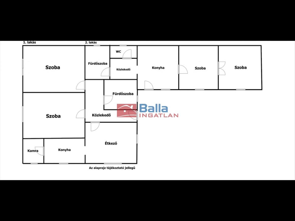 A kisebb, körülbelül 60 m²-es lakás szintén jól kialakított: két szoba, konyha-étkező, kamra, zuhanyzós fürdőszoba és külön Wc található benne. Itt is külön fűtésrendszer és villanybojler működik, valamint klíma is felszerelésre került. Igény esetén a két lakás egybe is nyitható, így egy nagyobb családi otthon alakítható ki.