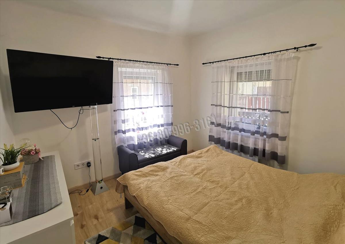 A ház teljeskörű belső felújítása két évvel ezelőtt történt. Kicserélték a teljes villany és vízvezeték hálózatot, ipari áram és a H tarifa is bekötésre került. a lakások külön mérőórákkal rendelkeznek. Műanyag nyílászárókat építettek be, melyek redőnnyel és szúnyoghálóval felszereltek. a bejárati ajtó mindhárom lakásban több ponton záródó biztonsági ajtó. a házban riasztó és kamerarendszer is telepítésre került. Hideg időben villanypanel és hűtő- fűtő klíma szolgáltatja a meleget, ez utóbbi a nyári melegben is jó szolgálatot tesz a ház kellemes hőmérsékletének eléréséhez. a burkolatok, szaniterek szintén mindenhol újak. Az összes konyhában az ár részét képezik a beépített bútorok, sütővel, elszívóval, főzőlappal és mosogatógéppel.