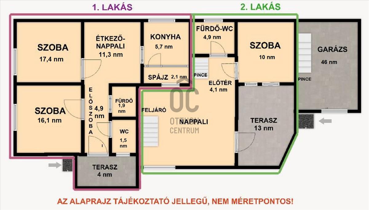 - 2. -Es lakás, belső kétszintes: 46, 3 nm a földszinten,
