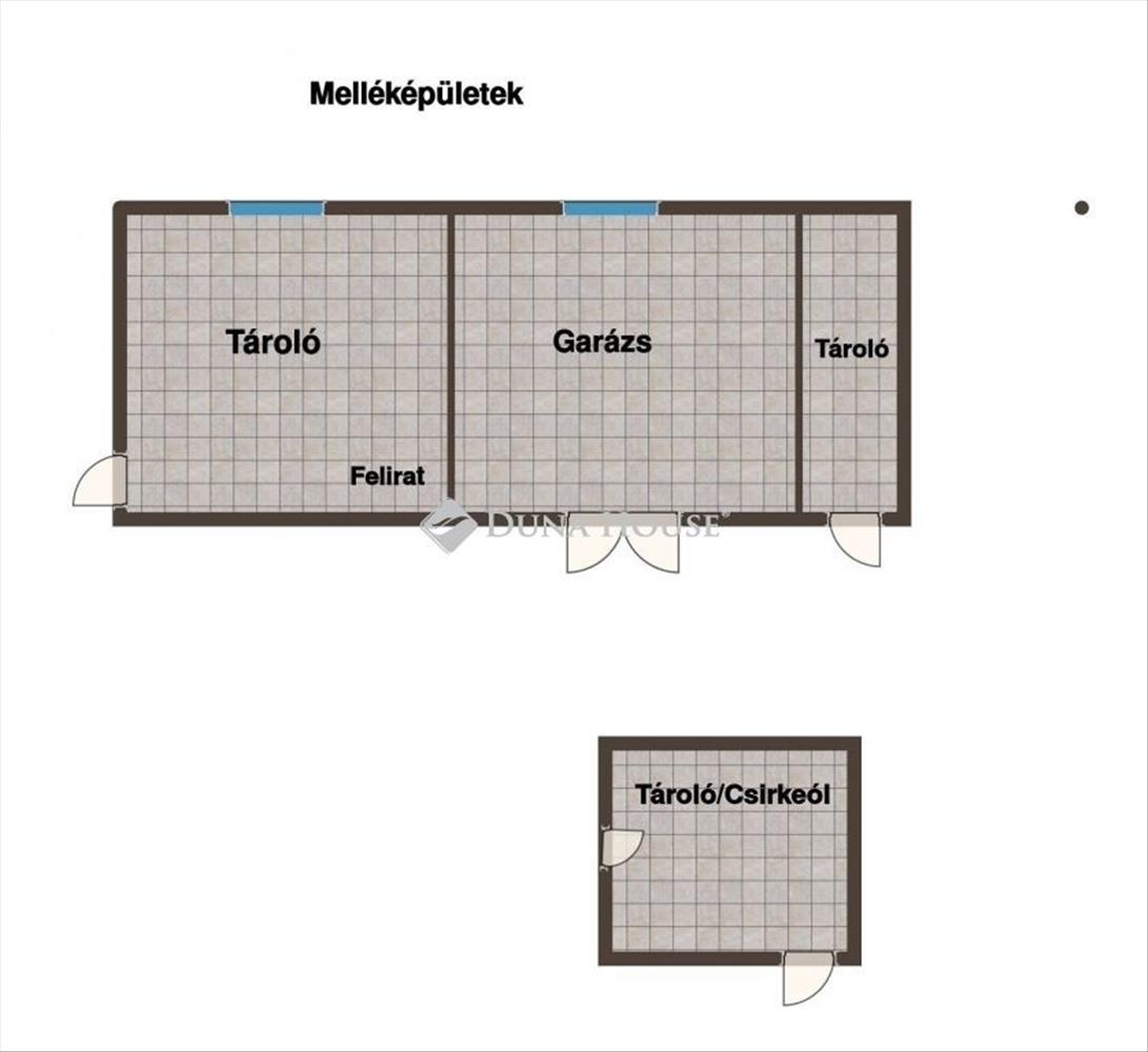Elektromos nagykapu lett felszerelve, így ki sem kell szállni az autóból, hogy be lehessen állni a garázsba. a garázs egy szintén vályog melléképületben kapott helyett. Itt garázs mellett számos tároló helyiséget lehet találni a melléképületben. Helyet kapott az udvarban egy kinti wc, valamint még egy kisebb melléképület, amely oldalában csirkeól lett kialakítva.