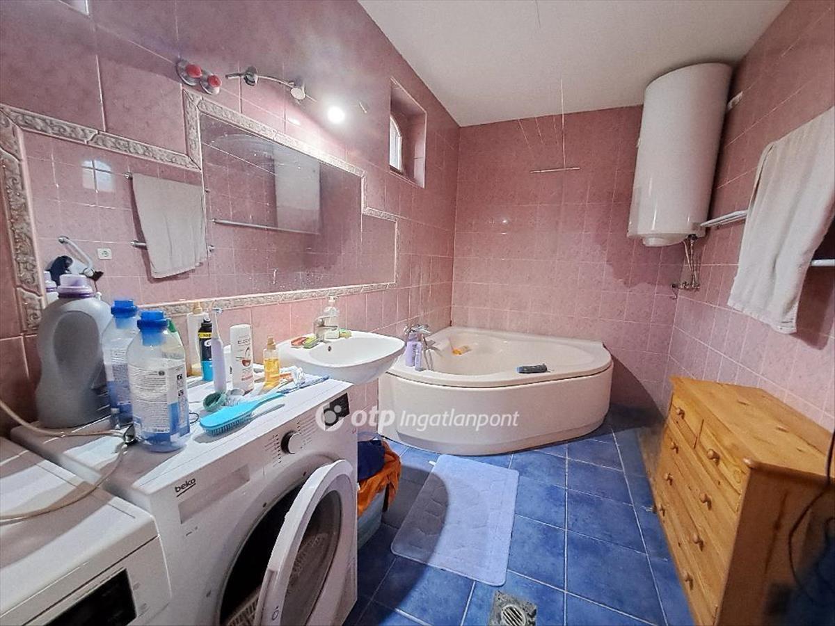 Új tulajdonosát keresi Jász-Nagykun-Szolnok vármegyében, Kisújszálláson, Szolnoktól 50 km-re egy 142, 5 nm-es családi ház ( ebből a kazánház 4nm a terasz pedig 26nm) amely 900nm es telken került felépítésre. Az ingatlan 2 szintes a földszinten helyet kapott egy nappali, előszoba, konyha és étkező egyben, fürdőszoba külön wc, kamra. Az emeletre fából készült lépcsőn juthatunk fel itt található 3 szoba, nappali, wc. a kazánház a terasz hátsórészéről nyílik. a családi ház 2000-ben épült beton alapon tégla falazattal cserép fedéssel. Az otthon melegéről vegyestüzelésű kazán gondoskodik padlófűtés útján( illetve gázkazán is rendelkezésre áll de a gázóra leszerelésre került kihasználatlanság miatt ), a melegvíz ellátását villanybojler biztosítja. a kellemes hőérzetről nyáron két klíma is gondoskodik. a nyílászárók hőszigetelt műanyagok redőnnyel ellátottak, beltéren fa nyílszárók kerültek beépítésre ezen felül 5 cm külső szigeteléssel és színes homlokzat festéssel. Felújítást nem igénylő ingatlan, azonnal költözhető igényszerinti tisztasági festés után.A telken téglából épült melléképületek vannak illetve egy nagyméretű tárolásra használt helyiség ami garázsnak is megfelelő lehet, továbbá gazdasági ólak szintén tégla falazatúak. a telek végét lezáró kerítés újszerű mai trendnek megfelelő lindab lemezből készült, ami nyitható.