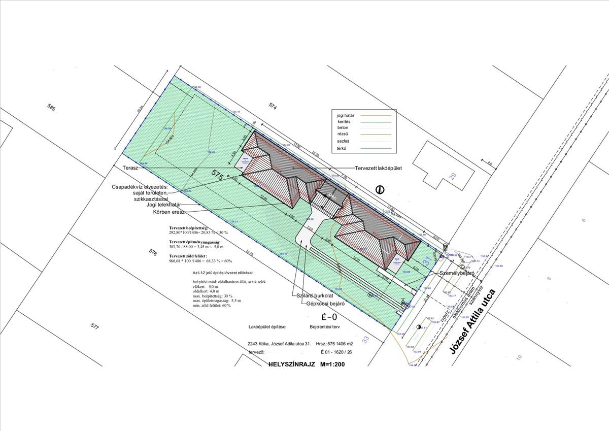 Eladásra kínálunk Kókán, a József Attila utcában egy 1406 m2-es telken épülő, két lakásból álló projektet. a házak tervezésénél a privát szféra volt az elsődleges szempont: a lakóegységek kizárólag a fedett gépkocsibeállóknál érintkeznek, közös lakófaluk nincs.