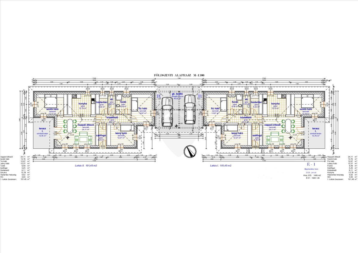 -Hátsó lakás: 101, 45 m2 nettó alapterület + 934 m2 saját telekrész.