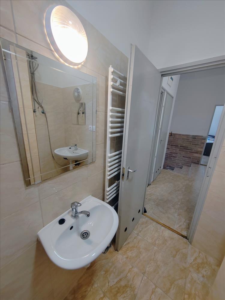 A lépcsőn leérkezve jutunk az előszobába, amelyből egy konyha, 2 szoba, 2 külön fürdő -wc-vel és