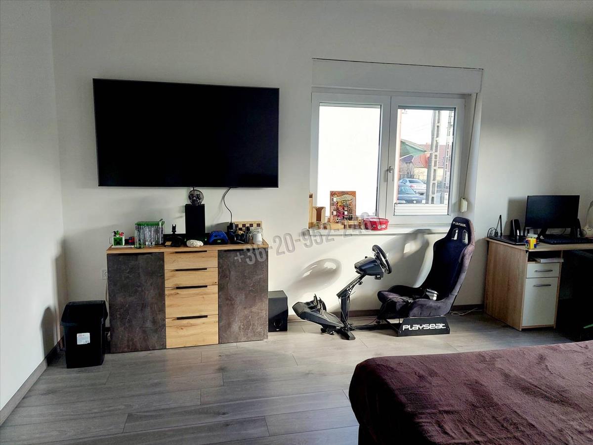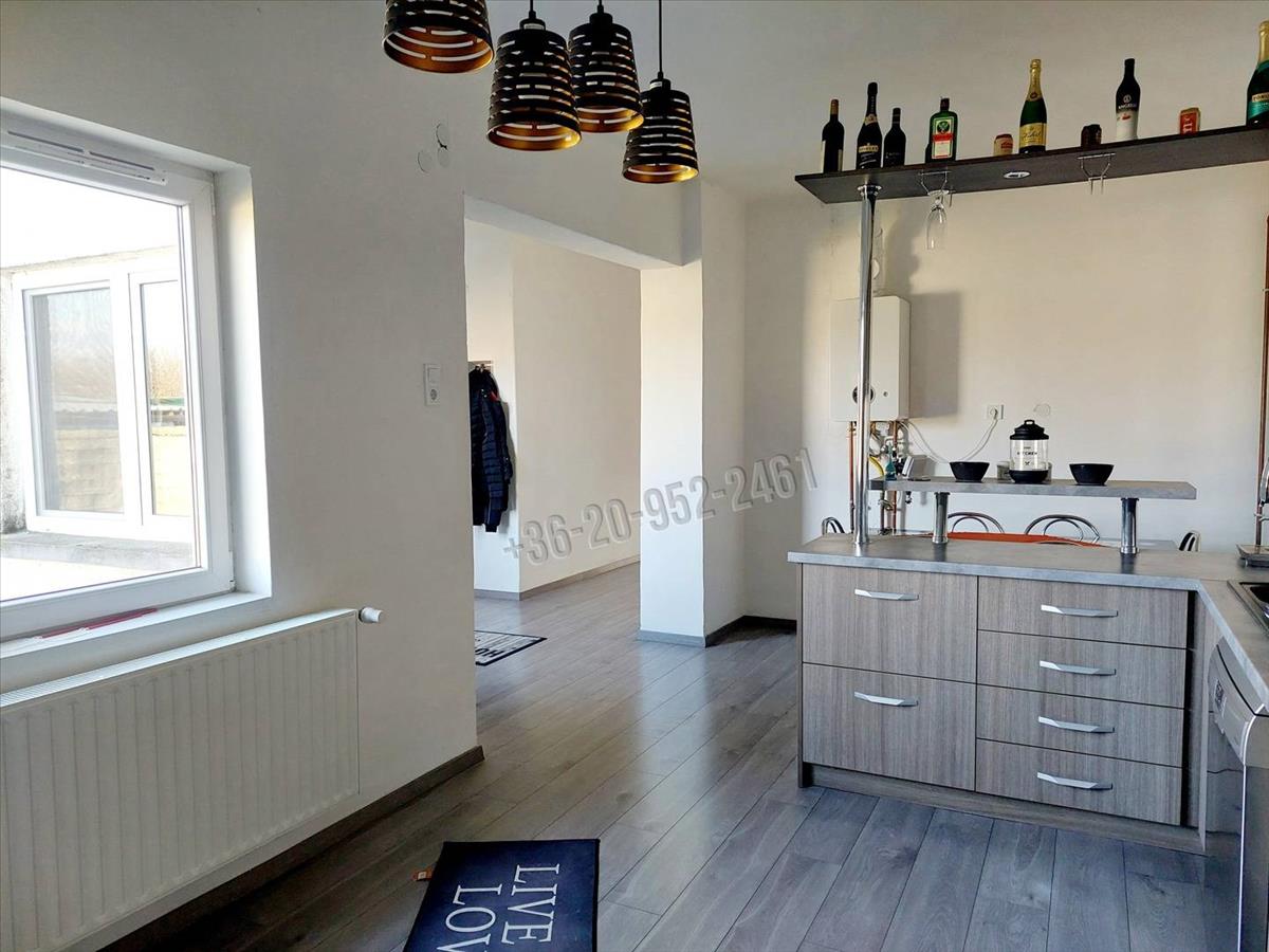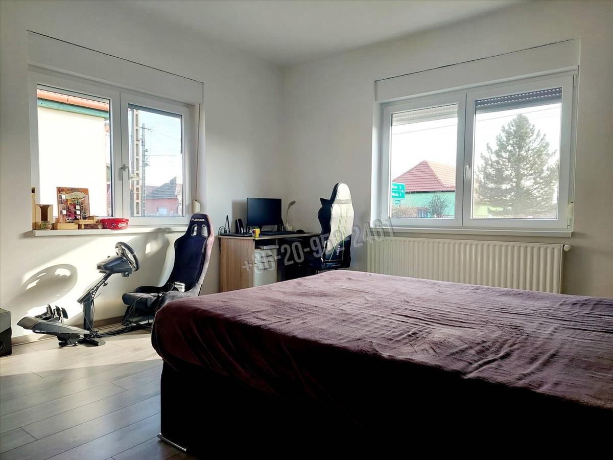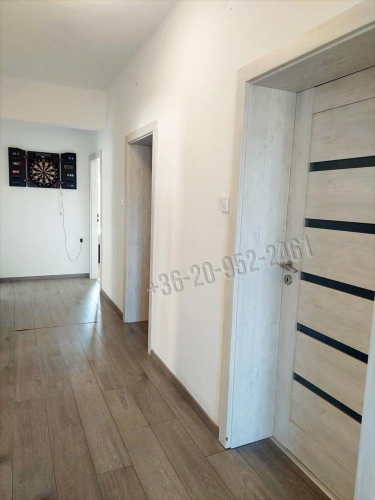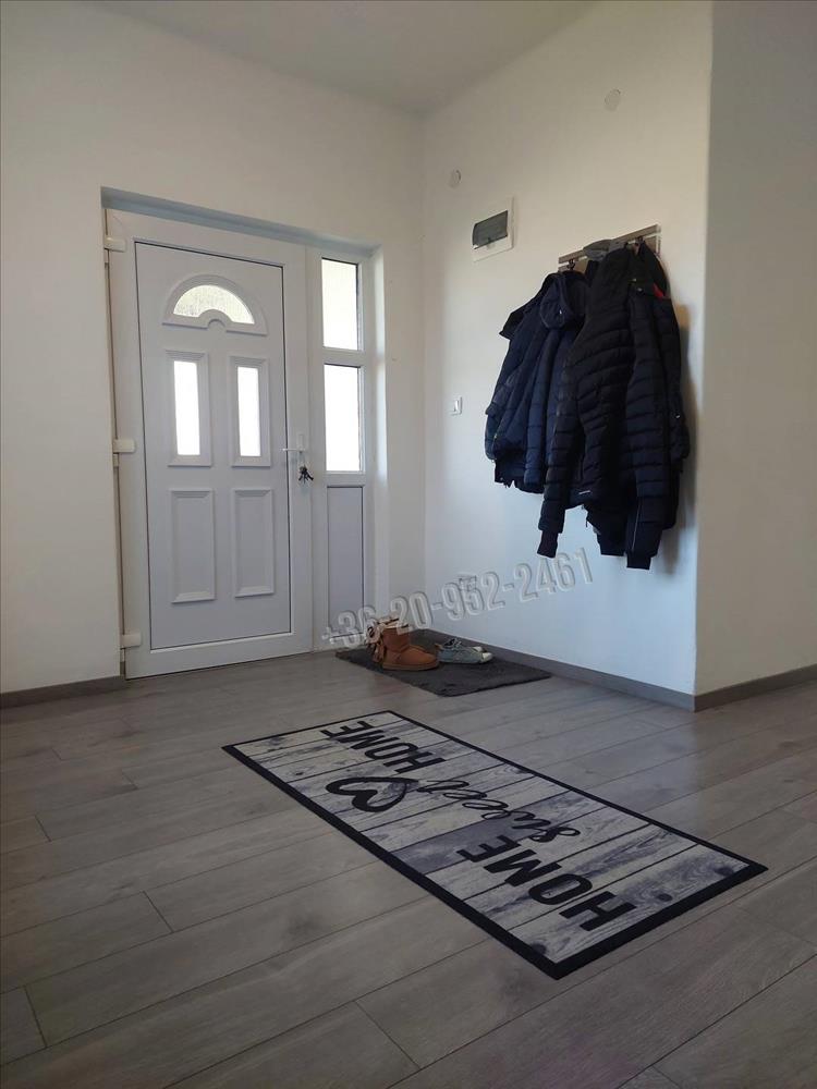A házba lépve az előtérbe lépünk és a nagy konyha+ étkező tűnik szembe, majd bal kéz felé fordulva találkozunk a hosszú folyosóval amelyről nyílik 3 szoba + tágas fürdőszoba és egy különálló toalett. Az ingatlan szinte teljes egészét magas kopásállóságú bio laminált padló borítja amíg a fürdőszobában és a toalettben vinyl padló van lerakva. Villanyóra: 16 a éjszakai és 32 a nappali áram.