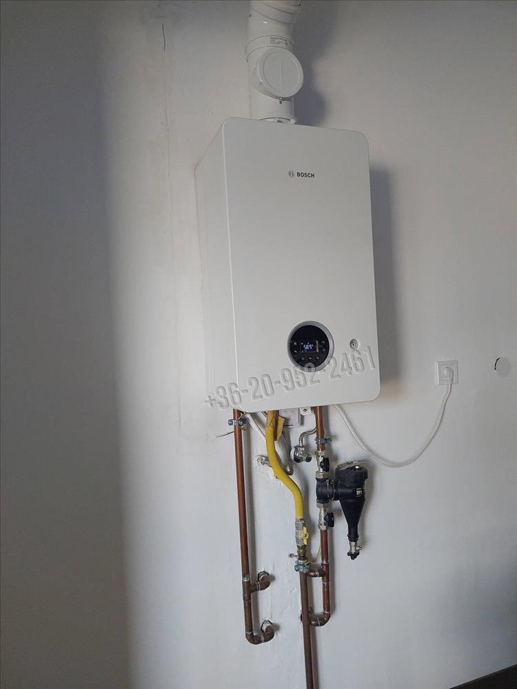 A melegvízszolgáltatás és a fűtés cirkó gázkazánról üzemel, radiátoros hőleadással.