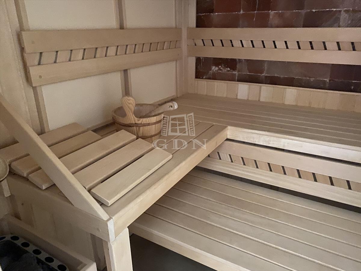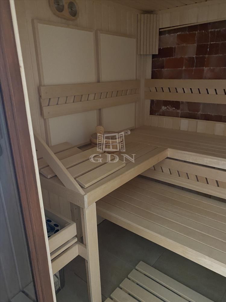 A lakásban helyet kapott egy kombinált finn-, és infraszauna, mely sótéglával és fényterápiával kiegészített. Az otthoni wellness élményt az emeleti fürdőben található Wellis gőzkabin-tusoló és Wellis fürdőkád teszi teljessé.