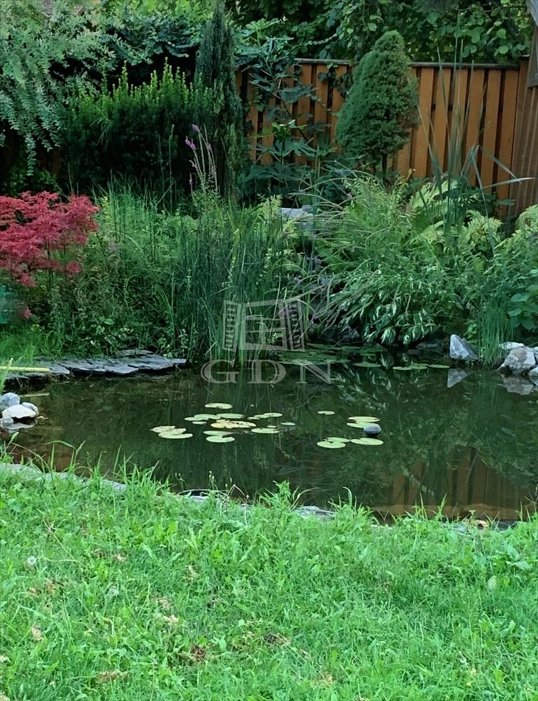 Gyönyörű látvány az udvar közepén elhelyezkedő tó, melyet rengetek növény ölel körbe.