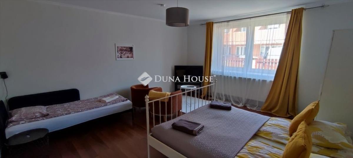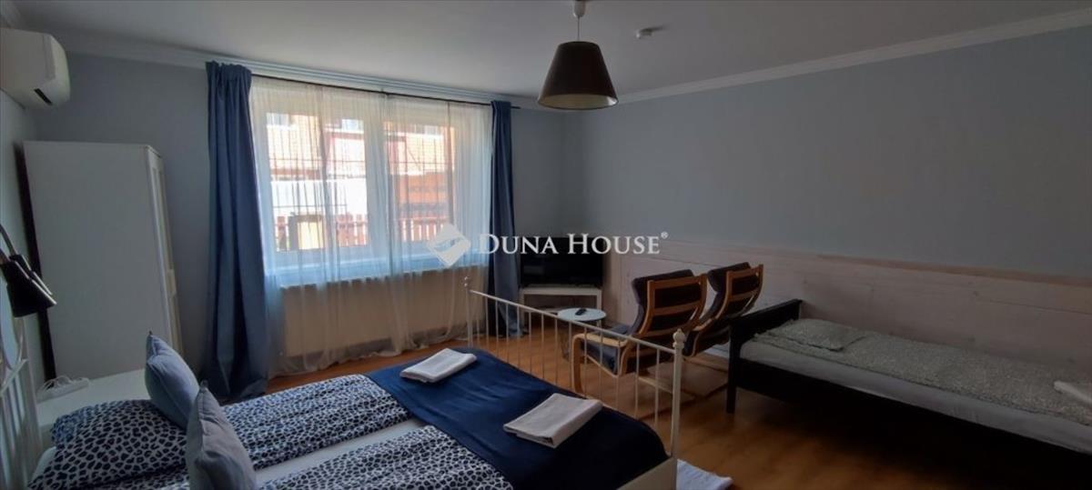 Eladó működő apartmanház komáromban - 7 apartmannalBefektetők figyelem! Komáromban, a Czuczor utcában közel a fürdőhöz eladásra kínálunk egy most is jól működő apartmanházat. a kőházban 5, a kerti faházakban további apartmannal rendelkezik. Összesen 23 fő befogdására képes az ingatlan. a ház több körben került átalakításra, először az alsó szinten két apartman, majd a kilencvenes években a tetőtér ráépítésével további 3 apartman került kialakításra. Időről időre minden apartmanban felújításokra került sor, valamint évente teljes tisztasági festést kap a ház. Minden részletében jól karbantartott épületről van szó. APARTMANOK:Földszint:Ap. 1. 2 Háló, 2 fürdő, közös konyha és étkező, 5 fő elhelyezésére alkalmasAp. 2. 1 Háló, 1 fürdő, 1 konyha-étkező, 3 fő elhelyezésére alkalmasTetőtérAp. 3-4-5Amerikai konyha-étkező-nappali, fürdő, 4-4-3 fő elhelyezésére alkalmasKerti faház 1-2:Háló, konyhasarok, fürdő, 2-2 fő elhelyezésére alkalmas, Nem téliesített. a gyönyörűen karbantartott kertben egy fedett és egy napvitorlás terasz került kialakításra a vendégek számára. a fűnyírásról egy robotfűnyíró gondoskodik, így minimális karbantartást igényel csak a tulajdonosok részéről. a fűtésről egy kondenzációs kazán gondoskodik, az apartmanokban a radiátorok külön-külön szabályozhatóak, így lehetőség van a fűtés elzárására is külön-külön. Az elektromos áramot napelem segítésével biztosítják, amely segít a költségek minimalizálásában. Az apartman jelenleg is nagy kihasználtsággal működik, így a vásárló egy jól működő, bevezetett brand-et is kap az ingatlannal együtt. (Ilona apartmanház)Jelenleg mindhárom nagy szállláshelyet értékesítő internetes céggel kapcsolatban állnak. (Booking, Airbnb, Szallas. Hu)Az értékelések alapján, ngyon kedvelt az utazók körében. a kihasználtsághoz hozzájárul a városban folyamatosan zajló építkezéseken dolgozók ellszállásolása, amely sokszor egész heti foglaltságot jelent több apartmanban is. Biztos befektetés, jó megtérülés. Ha érdeklődik a lehetőség iránt, kérem, keressen mihamarabb!