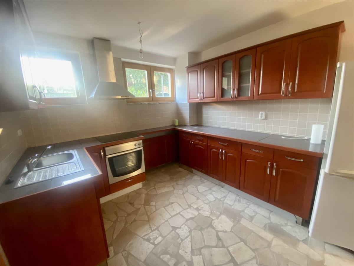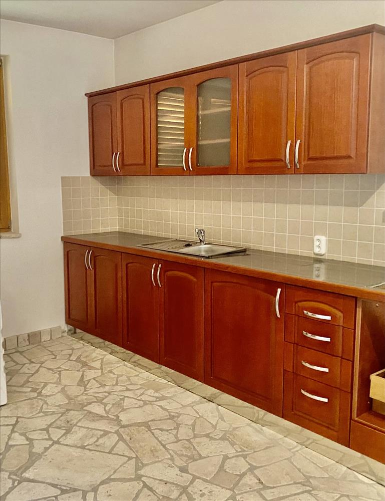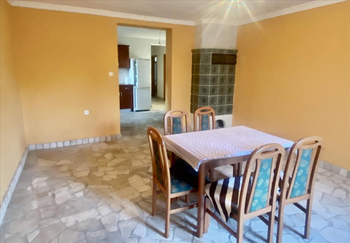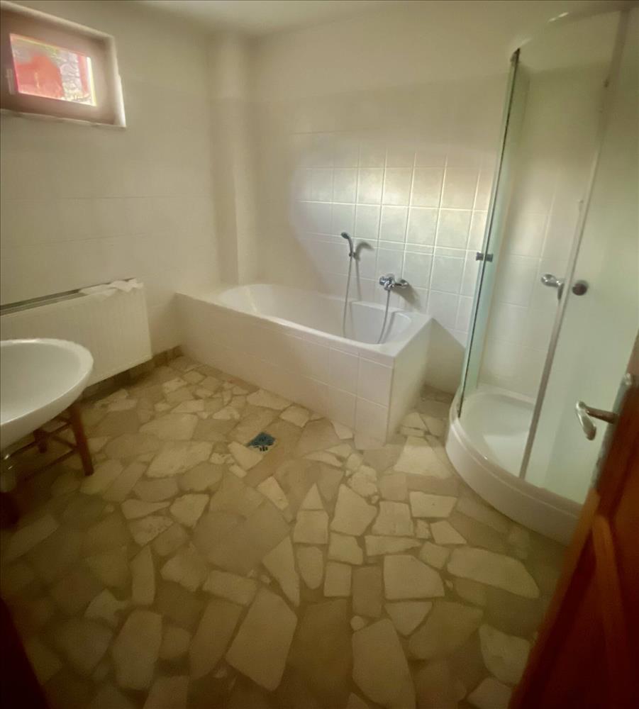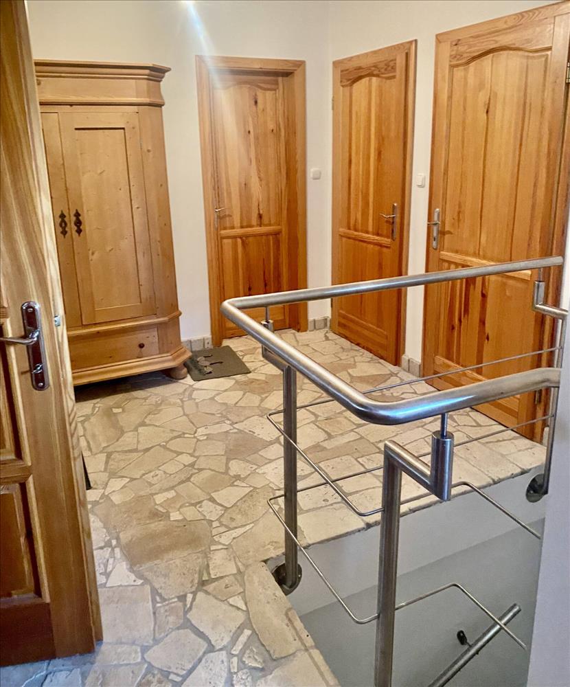 A burkolattal ellátott teraszról, egy tágas étkezőbe jutunk, amit a rusztikus cserépkályha tesz igazán meghitté. a konyha teljesen új bútorzatot és gépeket kapott. Ezen a szinten található még 2 szoba, amik teljesen elszeparáltak egymástól, ezzel is fokozva a privát életteret. a fürdőszoba káddal és zuhannyal felszerelt, a toaletet külön helyiségben találjuk.