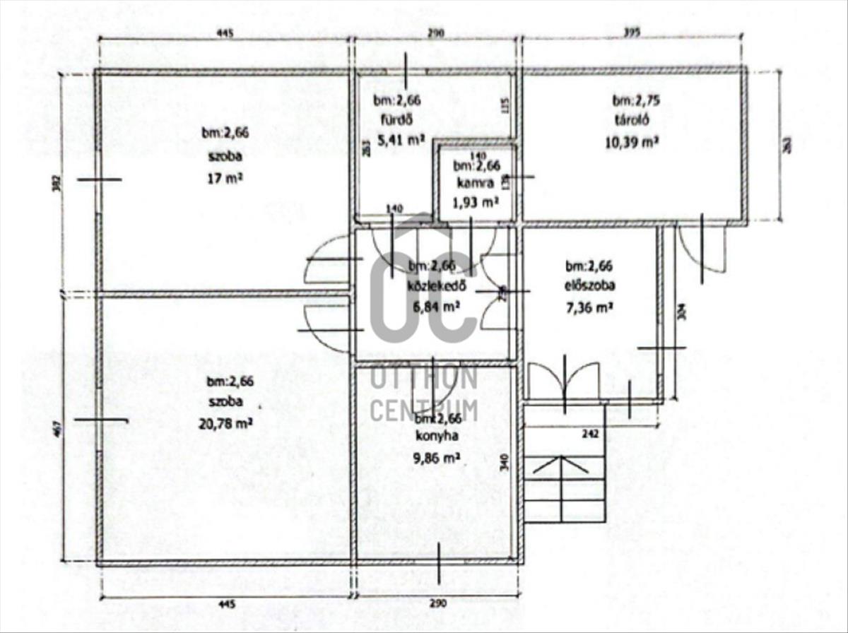 80 m2-es lakóingatlant, ( 2 szoba, konyha, fürdőszoba, előszoba, közlekedő, kamra található)
