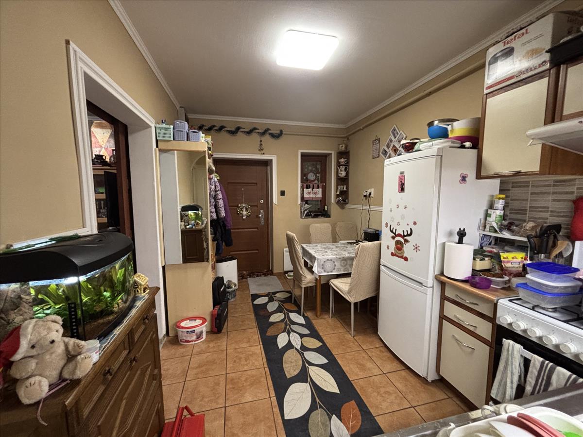 Az eladó lakás nettó 45 négyzetméteres lakótér praktikus elrendezésű: két külön nyíló világos szoba, előtérrel egybenyitott konyha, ablakos kamra és fürdőszoba biztosítja a kényelmes mindennapokat.