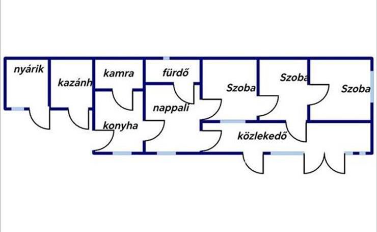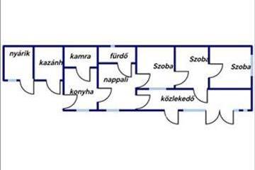 A házban három szoba, nappali, konyha, fürdőszoba, kamra, valamint egy tágas közlekedő kapott helyet, amely lehetőséget kínál egy második fürdőszoba kialakítására is-így akár több generáció együttélésére is ideális lehet. a három külön bejárat további rugalmasságot biztosít.