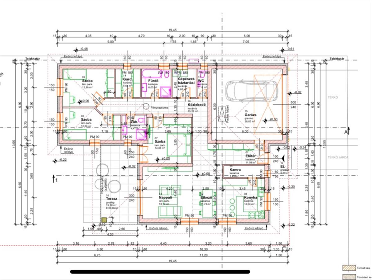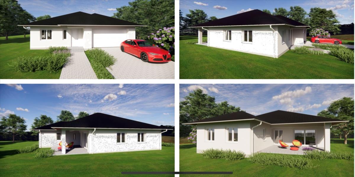 A tervek szerint az építtető egy közel 800nm-es telken 190 nm-es családi házat álmodott meg 3 hálószobával, gardróbbal. Különböző háztartási helyiségekkel, valamint egy rendkívül tágas amerikai konyhás nappalival. a fürdőszoba és a toalett külön helyiségben kerül kialakításra. a tervekben szerepel még egy fedett garázs, ami megfelelő akár 2 autó parkolására is.