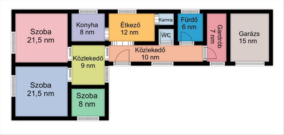 Elrendezés: 3 szoba, tágas gardrób szoba (akár félszobává alakítható), külön a fürdő és a WC