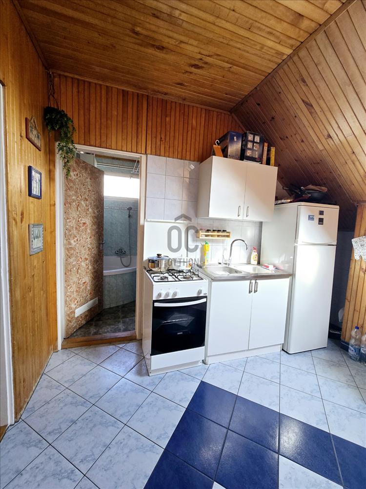 A külső lépcsőn keresztül megközelíthető emeleten további 2 szoba, nappali, konyha és fürdőszoba került kialakításra.