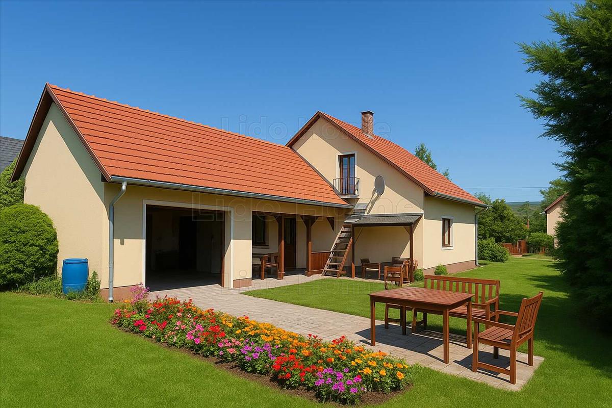 -A garázs 22 m2-es, árammal, vezetékes vízzel ellátott. a ház részben alápincézett (10 m2)
