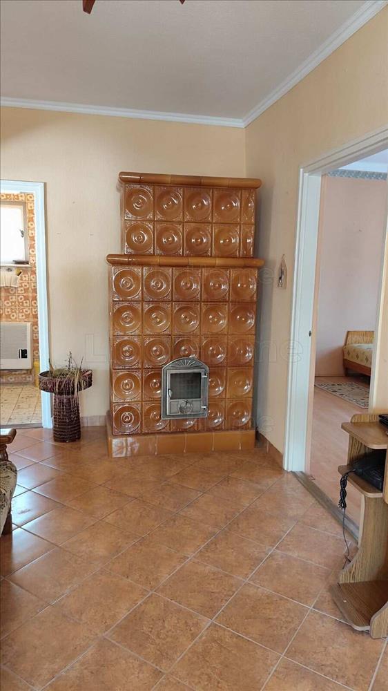 -a ház jelenlegi fűtése parapet konvektoros, kiegészülve egy működőképes cserépkályhával, meleg víz ellátása villanybojleres.