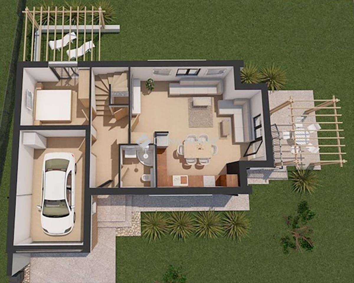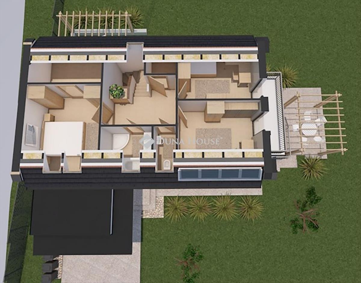 Aranyvölgy családi lakóparkKosdon, a Budapesttől csupán 34 km-re, Vác városától pedig mindössze 6 km-re található kedves kis településen eladó A+-os új építésű házak kulcsra kész állapotban, kedvező fizetési feltételekkel! OtthonStart hitel, Zöldhitel és csok+ igénylésére alkalmas házak! Természet közelsége: Élvezze a friss levegőt és a csodás tájat a közeli erdők és rétek varázsában! a hirdetésben szereplő ingatlan egy 2 szintes családi ház a lakóparban. , Egy önálló 679 négyzetméteres telekkel. a ház 2 szintes, mely ProKoncept technológiával épül, (mint a lakóparban található többi ház is) melynek hatékonysága, kiemelkedő megoldást kínál azoknak, akik környezettudatos és gazdaságos családi házban képzelik el jövőjüket! Az egész projekt egy csodás környezetben épül, a házból jóformán mindenhonnan panorámában gyönyörködhetünk. . . Főként a 2 szintes házak esetében. Az ingatlan a mai kor igényei szerint készült elosztásssal lett tervezve. Nagyobb közös életterek, melyből egy majd 20 négyzetméteres terasz teszi még élhetőbbé a teret. a földszinten is van egy szoba, mely kiváló lehetőség lehet dolgószobának, vagy akár vendégszobának is. Az ingatlanban van egy garázs is, mely közvetlen megközelíthető az előtérből is. Ezen felül, ahogy alaprajzon is látható, a garázs előtt is van hely, még egy gépkocsi beállási lehetőségének is. Az emeleten 3 kellemes méretű hálószoba található, a legnagyobb szoba, egy külön gardróbbal is rendelkezik. , Valamint egy 13 négyzetméteres tetőterasz is ezen szobából nyílik. a 2 másik szobához pedig egy 6 négyzetméteres közös erkély tartozik. a fűtésről hőszivattyú fog gondoskodni, padlófűtés formájában, ezen felül hűtő-fűtő klíma is beépítsére kerül. Napelem létesítése felár ellenében megoldható. a burkolatok (hideg, meleg) választhatóak egy megadott lista alapján, de természetesen amennyiben a felhozatalból egyik sem nyeri el ízlését, választható más is, adott esetben felár ellenében, ha ez eltér a lista ártól. a nyílászárók 3 rétegű üvegezésűek, kívül antracit, belül fehér színűek. a belső falakról: a főfalak gipszkarton borítást kapnak, a válaszfalak pedig szintúgy gipszkartonból épülnek fém szerkezetre. Eezek belsejébe szigetelőanyag kerül, majd minkét oldalról dupla karton borítást kapnak. Az ingatlan kivíló választás lehet azon kedves vevők számára, akiknek fontos, hogy egy energiatakarékos, (várható rezsiköltség 8-10 ezer Ft körül várható) kellemes környezetben, kedves kis községben képzelik el a jövőjüket! a legközelebbi nagyobb város, nem más mint Vác, a Dunakanyar szíve, ahol tényleg minden megtalálható. . . Munkalehetőség, számtalan nagyobb és kisebb üzletlánc, bolt, kórház, főiskola. . . . Óvoda, bölcsőde, iskola. . . Az utóbbiak magán, Kosdon is vannak. Kosd egy rejtett kis kincse az agglomerációnak, ahonnan nemcsak a főváros érhető el könnyedén, de a közvetlen környezete is tele van látnivalókkal, a természet közelségével. Amennyiben felkeltette érdeklődését az ingatlan, vagy kíváncsi a projektben található többi házra, várom kedves hívását, akár kérdésekkel, akár megtekintéssel kapcsolatban! FIX 3% lakáshitelre megvehető