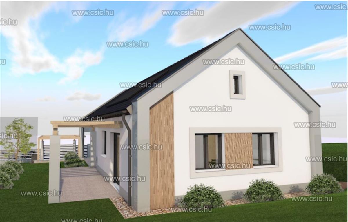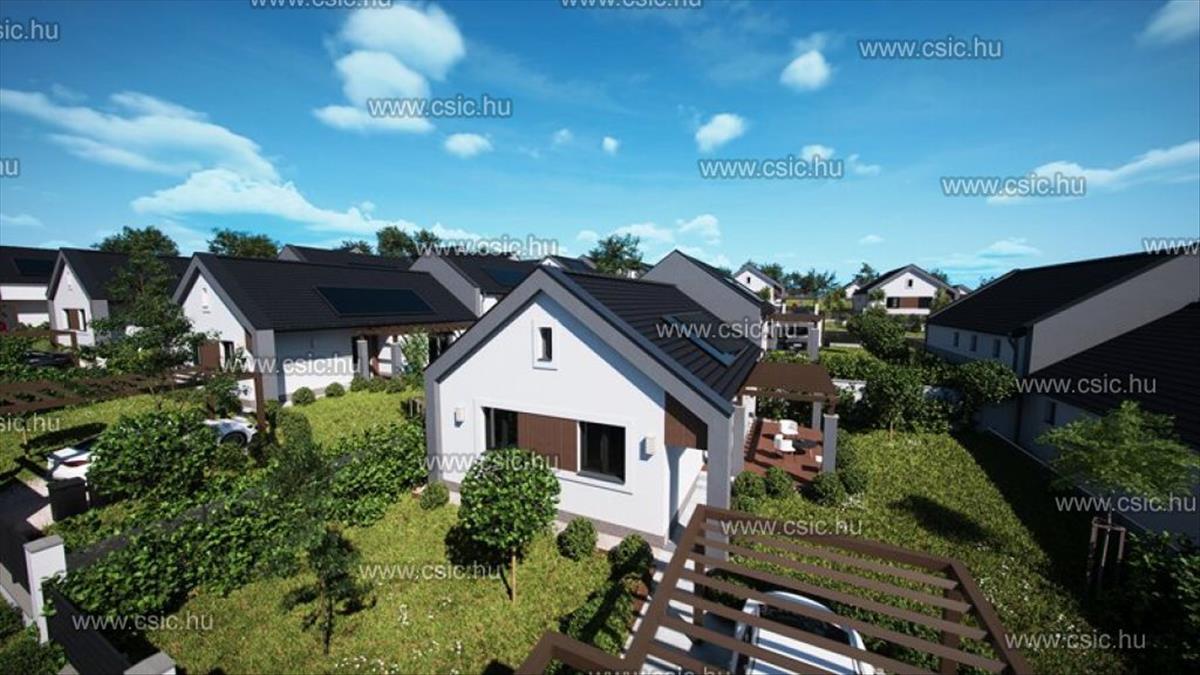 Műszaki adatok: Az épület 35 cm-es pck légcsatornás (ProKoncept) falazóelemből épül 15-25 cm-es neopor homlokzat-, födém-, tető szigeteléssel. a nyeregtető fa szerkezetű, a héjazat antracit szürke bramac betoncserép. a padlófűtéshez és a használathoz a meleg víz előállítás hőszivattyúval történik. a hűtést és a szellőzést egy fancoil rendszer biztosítja. a fürdőszobában elektromos törölköző szárítót szerelnek. Műanyag ablakok 3 rétegűek, minőségi beltéri ajtók válaszható színben, több ponton záródó bejárati ajtó, választható minőségi burkolatok /szaniterek.