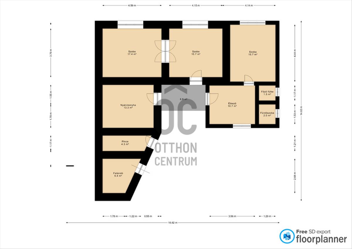 Az ingatlan vegyes falazatú, fa födémes, elrendezése jól alakítható, így bőven teret ad az egyéni elképzelések megvalósítására. a házban 3 szoba, étkező főzőfülkével, fürdőszoba, továbbá külön nyári konyha, tároló és egy tágas pince is helyet kapott.