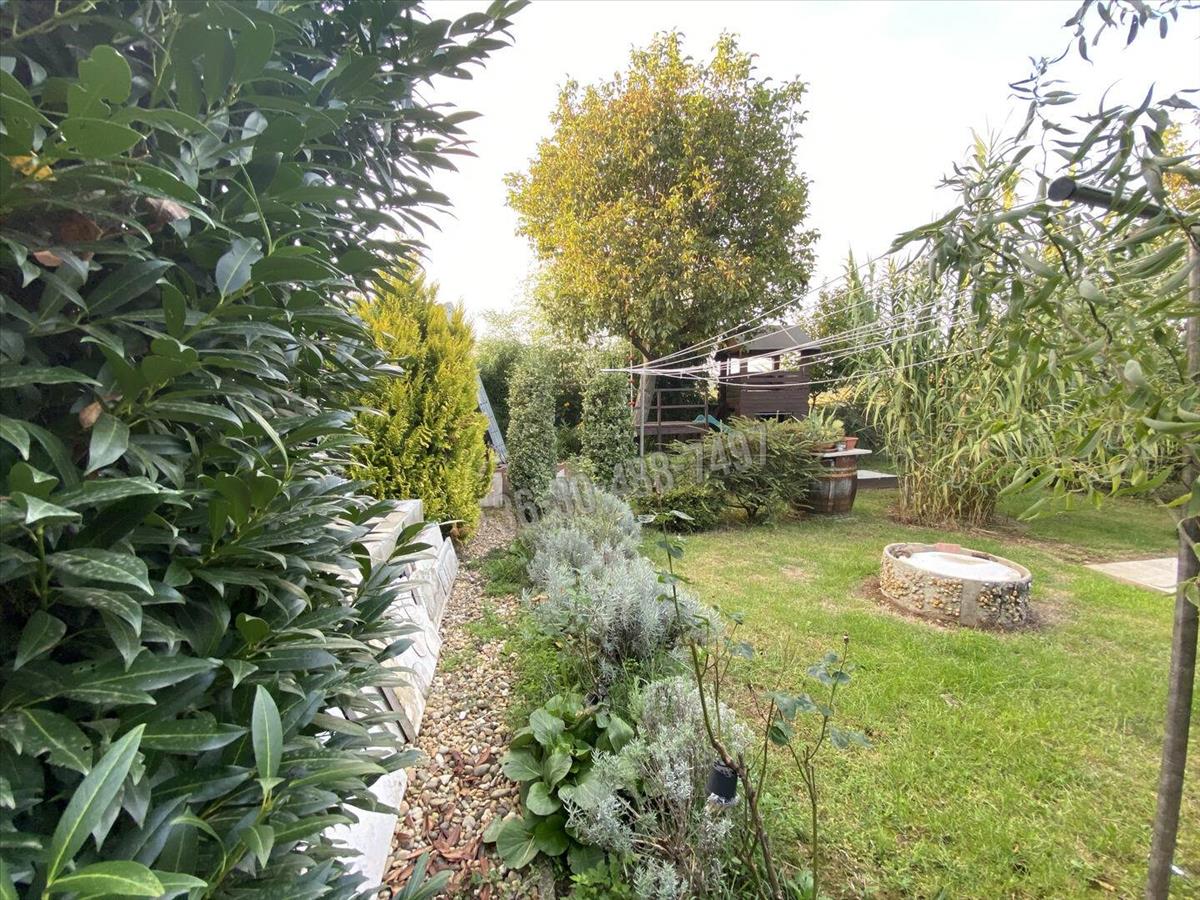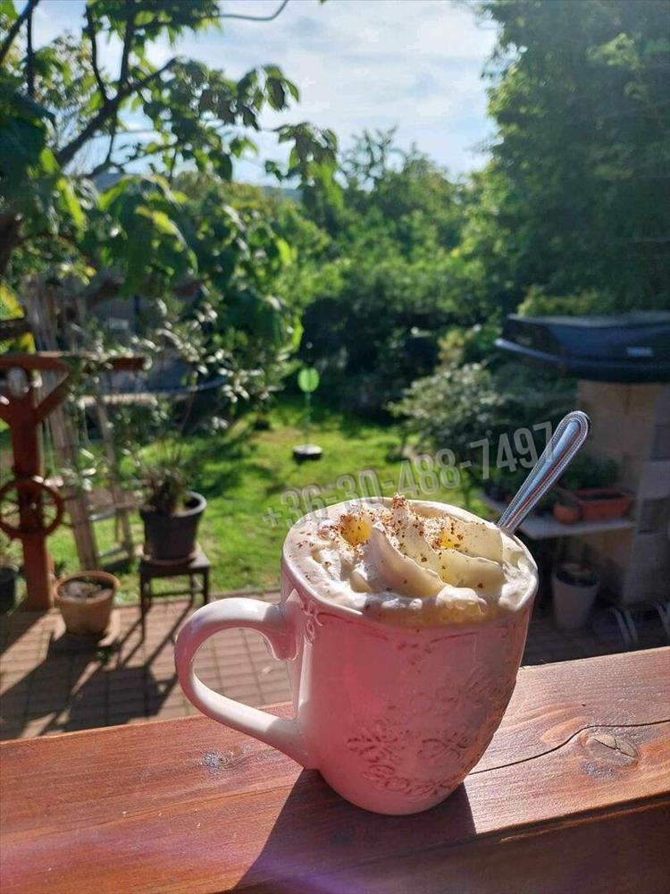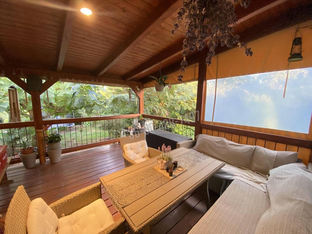 A nappaliból közvetlen kijárattal egy 27 nm-es, fedett fa terasz került kialakításra, kilátással a kertre, melyben szebbnél szebb növények lettek ültetve.