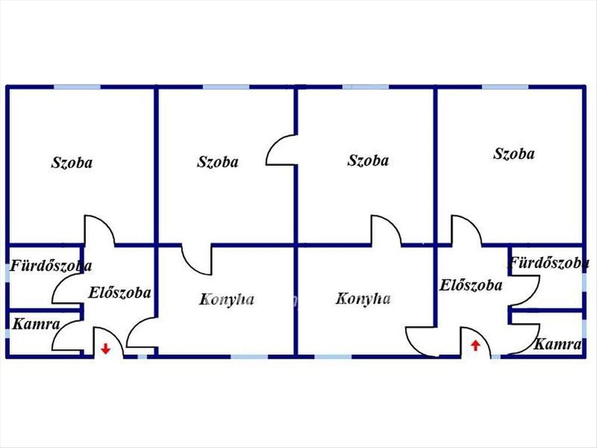 Az ingatlanban 4 szoba, 2 konyha, 2 fürdőszoba, 2 előszoba került kialakításra, mivel ez egy ikerház volt amit egybenyitottak, de ennek ellenére 2 generáció számára is alkalmas lehet.