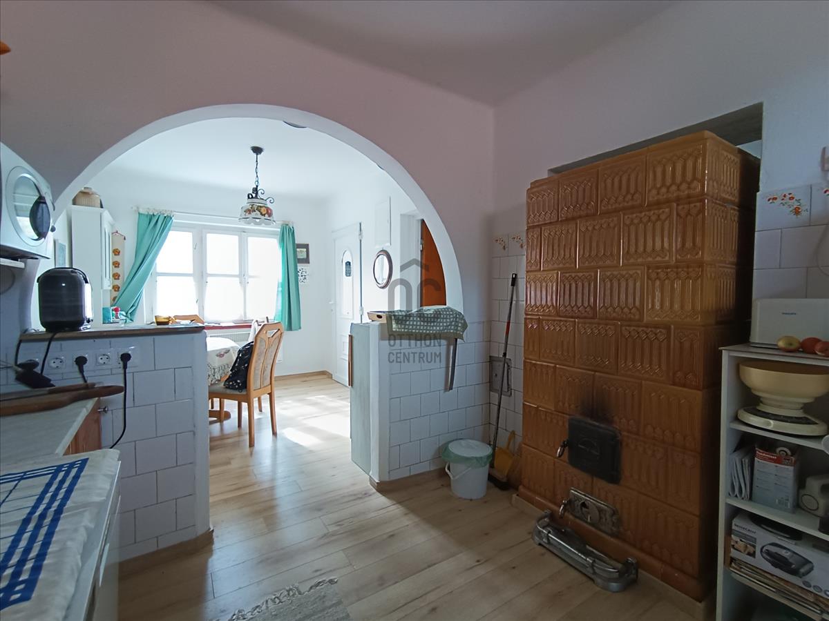 Bent egy cserépkályha áll az étkező és a nappali között, ezen kívül elektromos panelek biztosítják a fűtést. Étkező, konyha, nappali, hálószoba, spájz, fürdőszoba elosztással került kialakításra.
