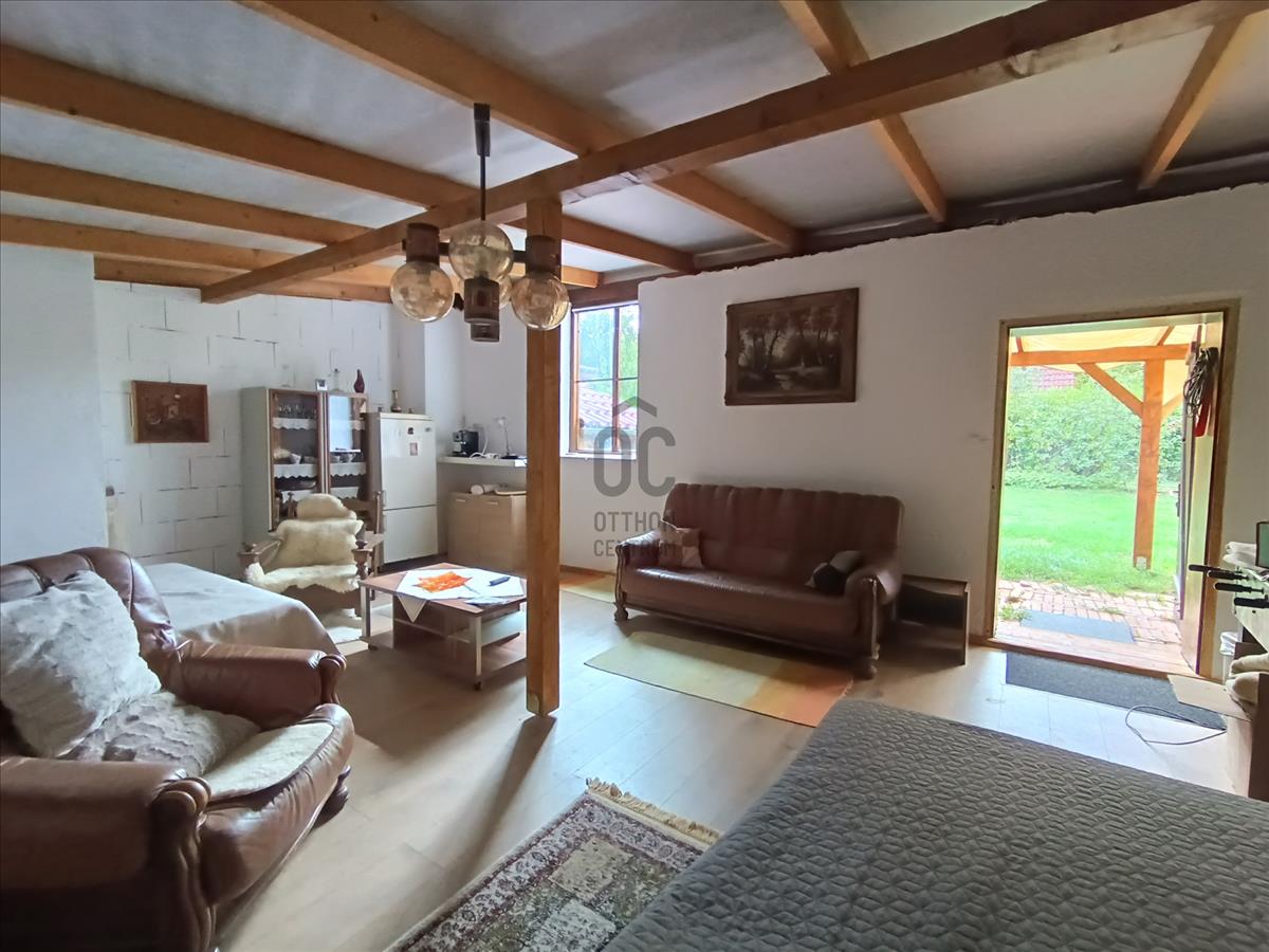 A falazat alapja kő, ezen új tégla hozzáépítés van, a tetőn cserép fedés. a vasalt betonkoszorúnak hála a tetőtér beépíthető, ahol kényelmesen még 2-3 szoba elhelyezhető.