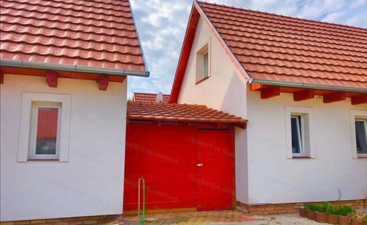 Kővágóörsi, 2 azonos alapterületű összesen 230 m2 és azonos beosztású családi házát 738 m2 telken.