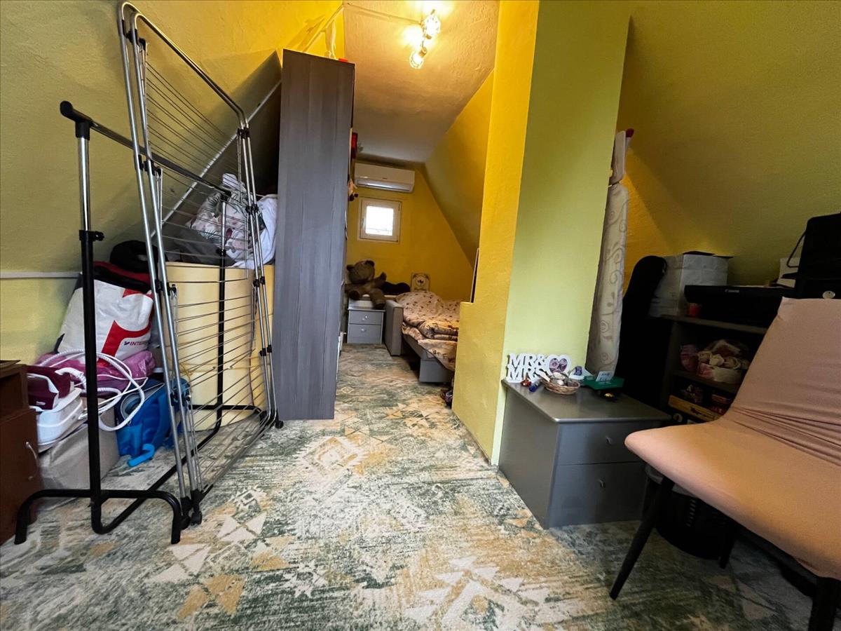 Az ingatlan 2 szintes, lent van a fürdőszoba, konyha-étkező és másfél szoba, fent pedig még egy szoba, amely külön bejárattal rendelkezik.