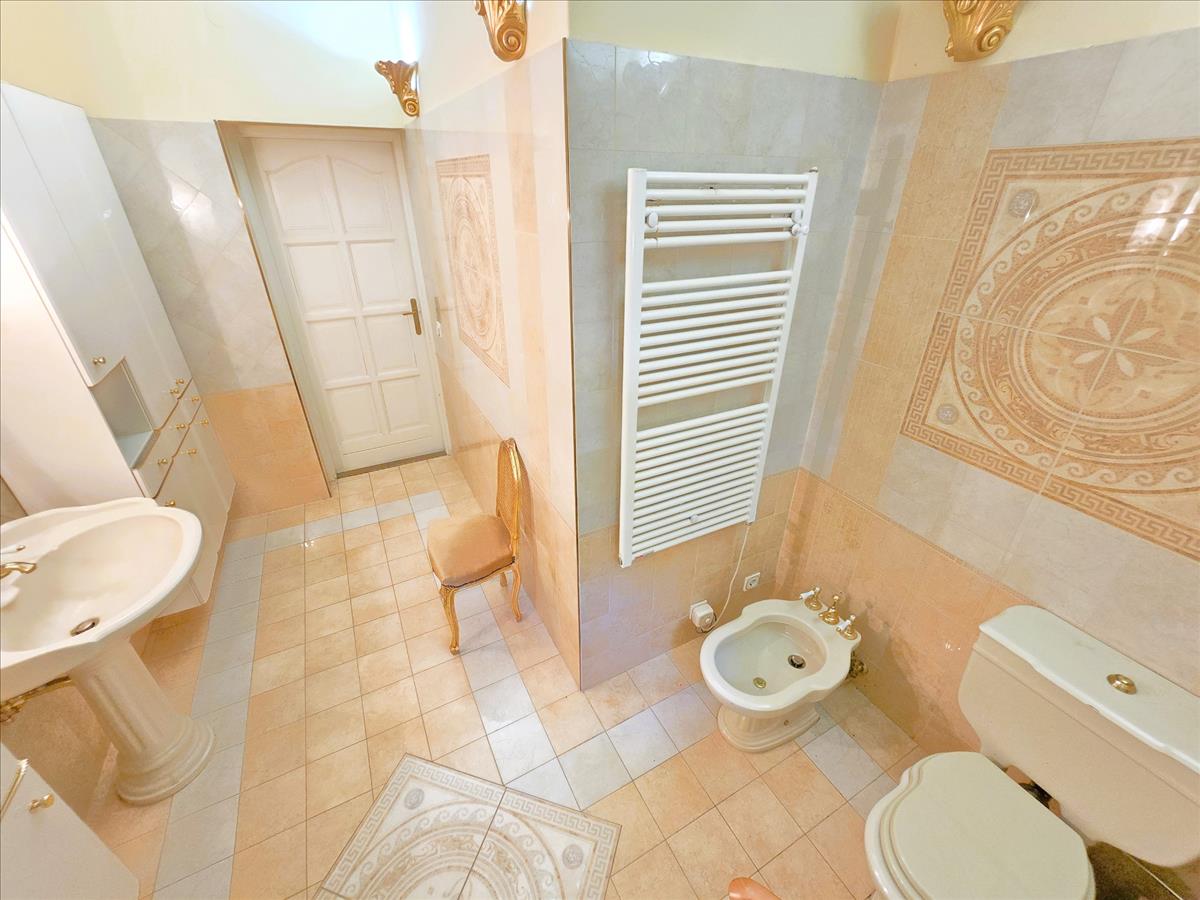 11, 5 m²-es elegáns fürdőszoba, zuhanyzóval, WC-vel, bidével.