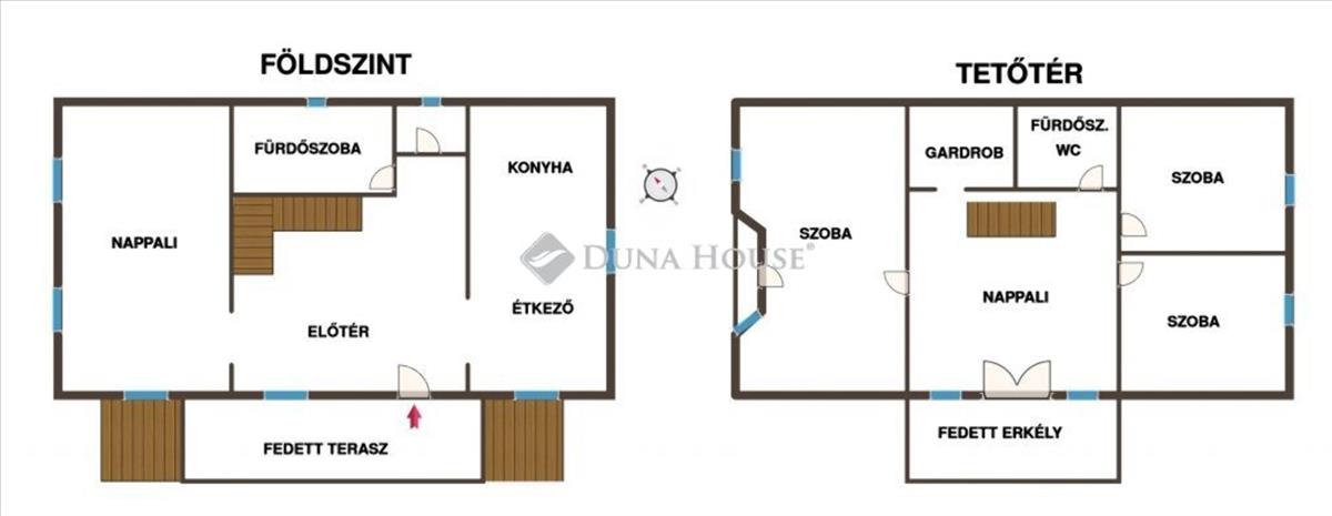 - fedett teraszon keresztül megközelíthető bejárat,