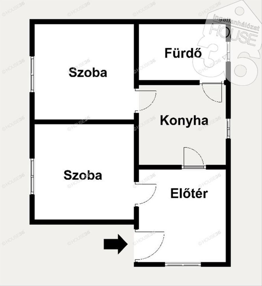 Előtér, 2 szoba, konyha, kádas fürdőszoba