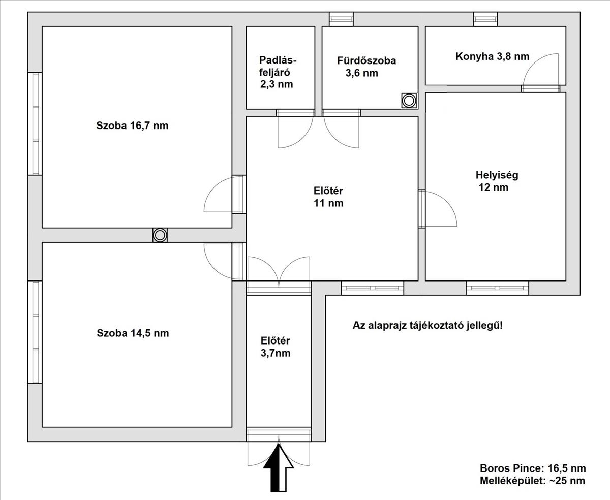 A ház alatt található egy 16, 5 négyzetméteres (boros)pince, illetve egy nettó ~25 négyzetméteres melléképület, melynek 2 bejárata van, az egyikben eredetileg egy kazánházat szerettek volna (így erre a részre be van húzva a gázvezeték is), illetve közvetlenül mellette található egy 2 helyiséges épületrész, ami alkalmas lehet nyári konyhának, a belső részben pedig megépítettek egy hatalmas kemencét, ami jó/használható állapotban van.
