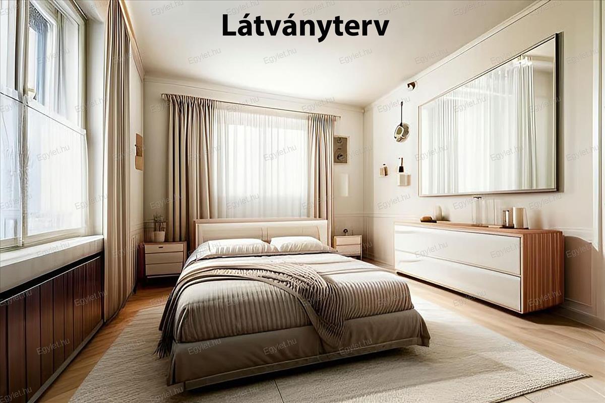 A szobák hirdetési képei a valós állapotot mutatják, majd közvetlen utánuk látványterv látható, mellyel a felújítás utáni lehetséges alternatíva kerül bemutatásra.