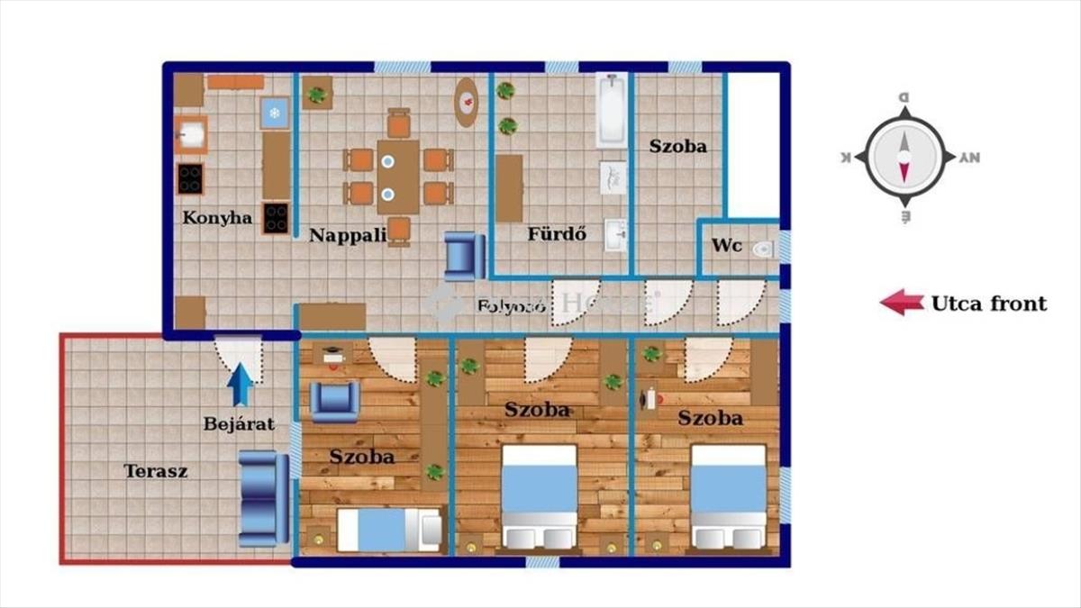 - Tájolás:ÉNY